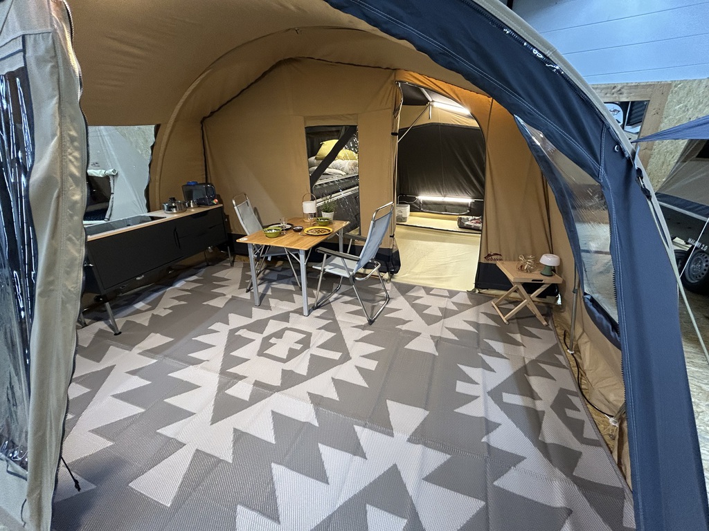 - Rundbogen Vorzelt mit Bodenwanne 270 cm tief und 440 cm