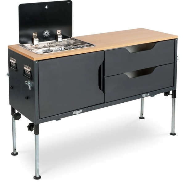 - DL Küche mit 2 Flammenkocher mit ansprechender Arbeitsfläche und Stauraum / wird hinten angehängt
