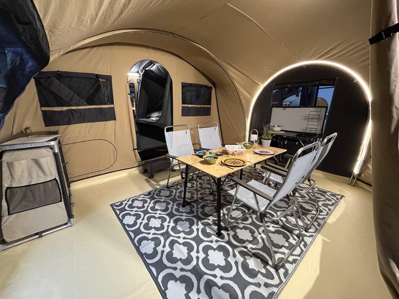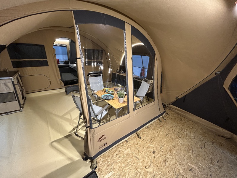 - Bodenwanne im Vorzelt mit Reißverschluss einsetzbar