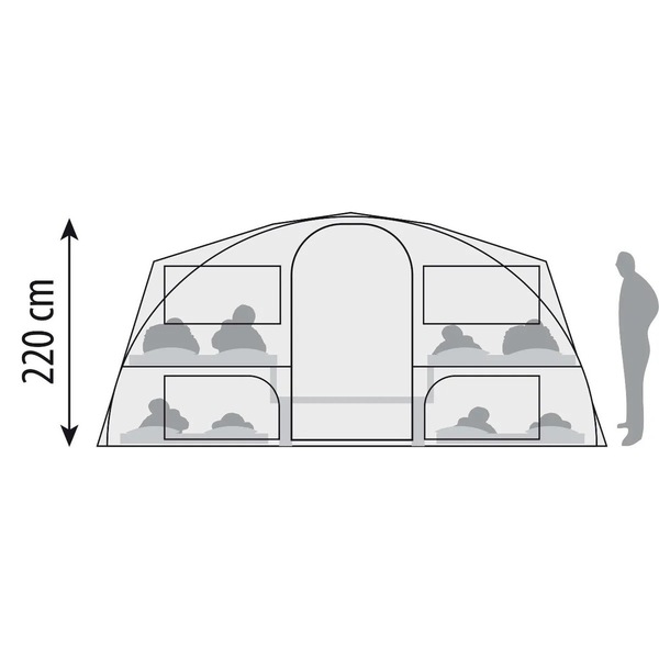 2-6 Personen geeignet. Das geräumige Rundbogen Vorzelt wird mit nur 3 Rundbögen aufgestellt und ist daher sehr schnell von einer Person aufgebaut. Die serienmäßige Bodenwanne lässt sich komfortabel