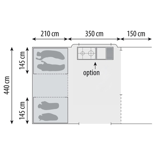 integrierten Sonnendach am Vorzelt ergibt sich eine nutzbare Fläche von knapp 220 cm )