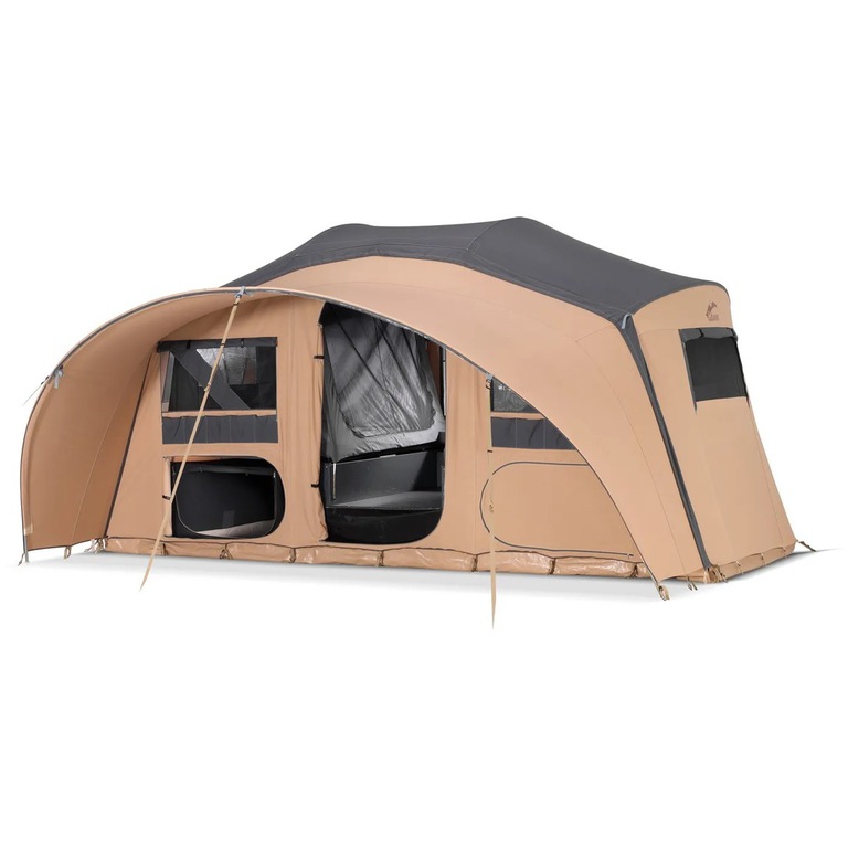 - Integriertes Sonnenvordach am Vorzelt