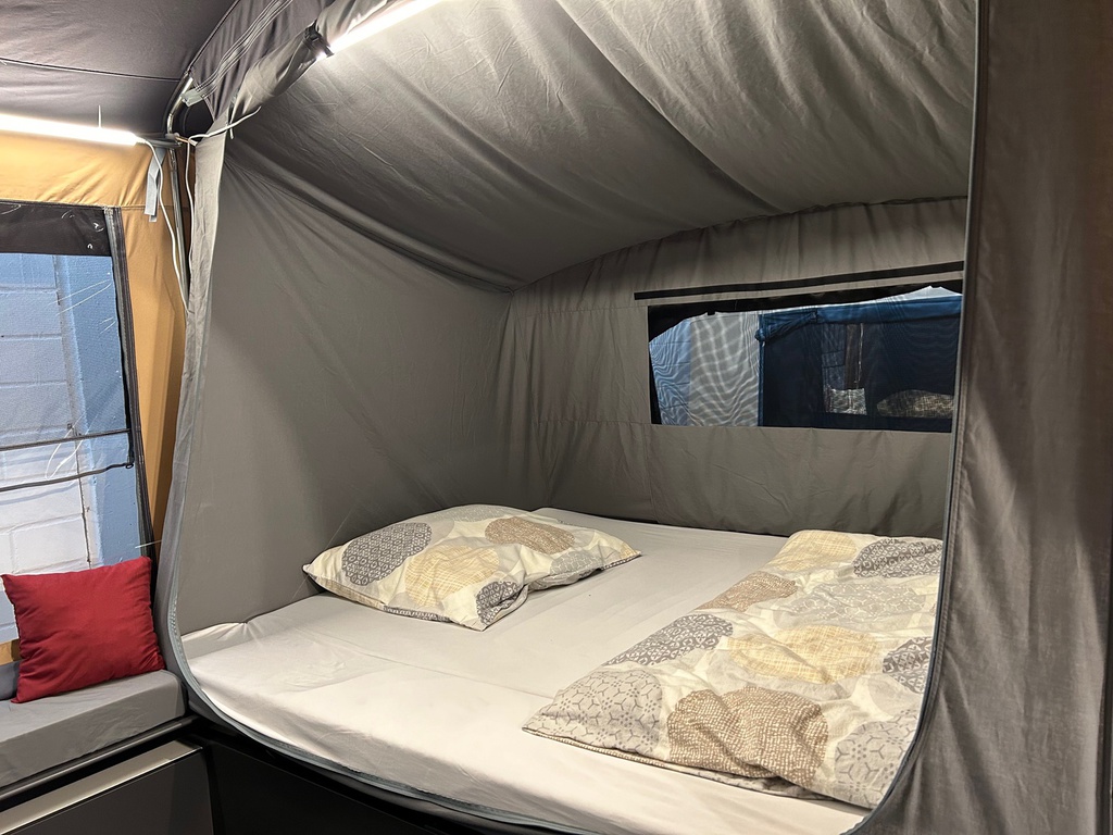Der Cabanon Monaco bietet die aktuell mit knapp 170 cm Breite und 210 cm Länge die größten Betten in einem Faltcaravan an. Das