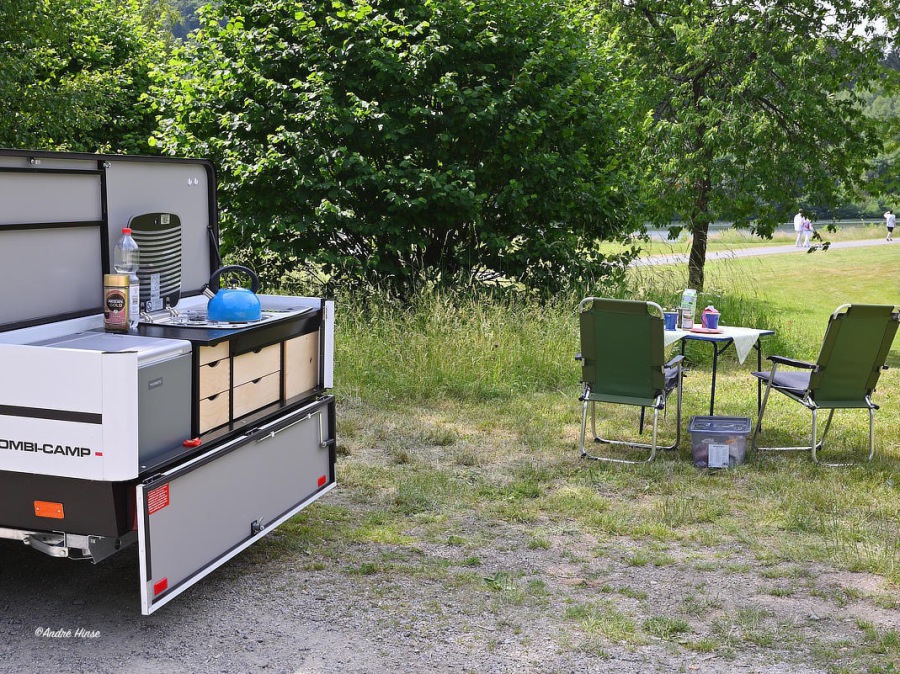 Der Combi-Camp Flexi Zeltanhänger lässt sich mit wenigen Handgriffen inklusive Vorzelt aufbauen und bietet Platz für bis zu 5 Personen.