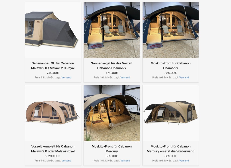 Du besitzt bereits einen Zeltanhänger und suchst nach dem passenden Zubehör? Bei uns findest du eine große Auswahl an praktischen Erweiterungen – von Unterzelten, Moskitonetzen und Sonnensegeln über Gepäckträger für Cabanon-Modelle bis hin zu Toppern, Luftmatratzen und individuellen Ausbaulösungen für Campooz. So bereitest du deinen Caravan perfekt auf die nächste Saison vor!